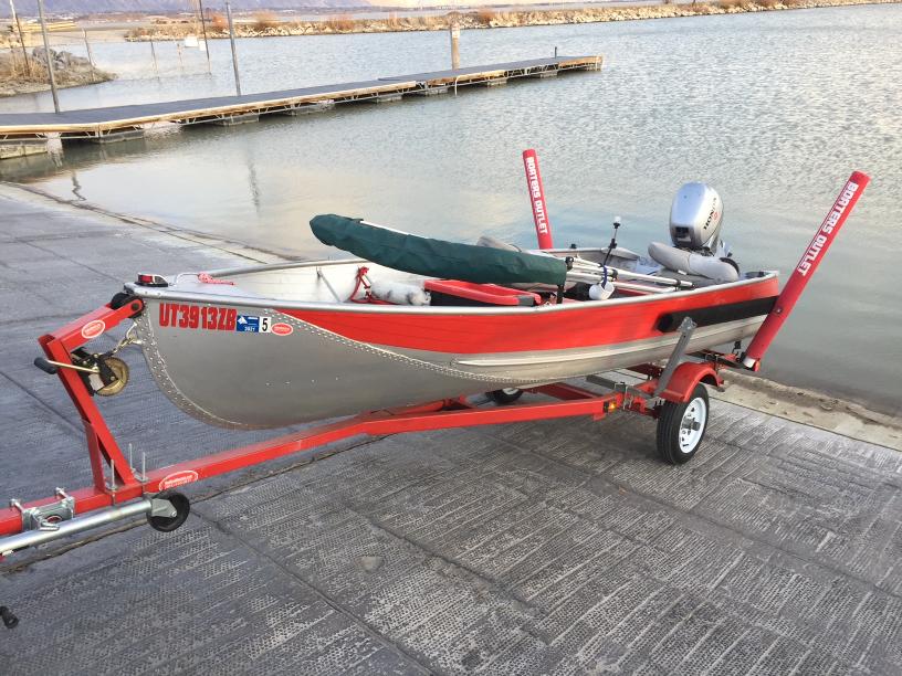 With the trailer completed, I turned my attention to the boat itself. The seats were removed and remade from plywood. Several holes in the bottom of the boat needed patching, and despite its aluminum body, there was some corrosion that had to be cleaned off. After cleaning the hull and patching the holes, I painted the exterior a striking red color to give it a fresh look. The final touches included cutting and painting new seats, installing a new bimini, as well as all the necessary electronics and the motor. I acquired a 9 hp trolling motor and mounted it on the stern.